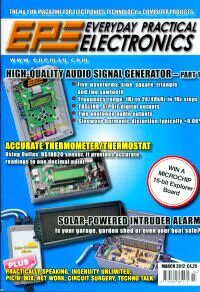 Generates sine, square, triangle and two sawtooth waveforms, 1Hz to 24kHz. THD 0.06% (internal DAC) or 0.0006% (ext DAC). Switch between S/PDIF 20-bit and AES/EBU 24-bit modes. Ten memories for storing settings. Many more features too numerous to list here! PICmicro PIC33FJ based. In Part 2 next month, assembly is described.