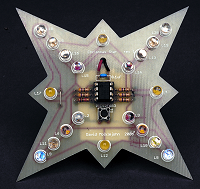 Attractive seasonal LED design cycles through hundreds of preprogrammed twinkling and flashing patterns. PIC 12F683 based, also user programmable but you don't need to know about programming to enjoy building this design.Compact but eye-catching, our Christmas Star can be placed on a Christmas tree or hung in a window. 3V battery power, auto power-down after three hours.